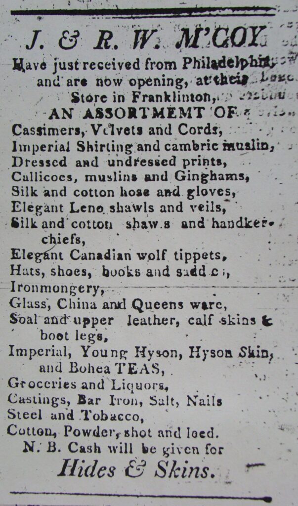 Ad, 1812-12-26, Franklinton, OH by J & RW M’Coy